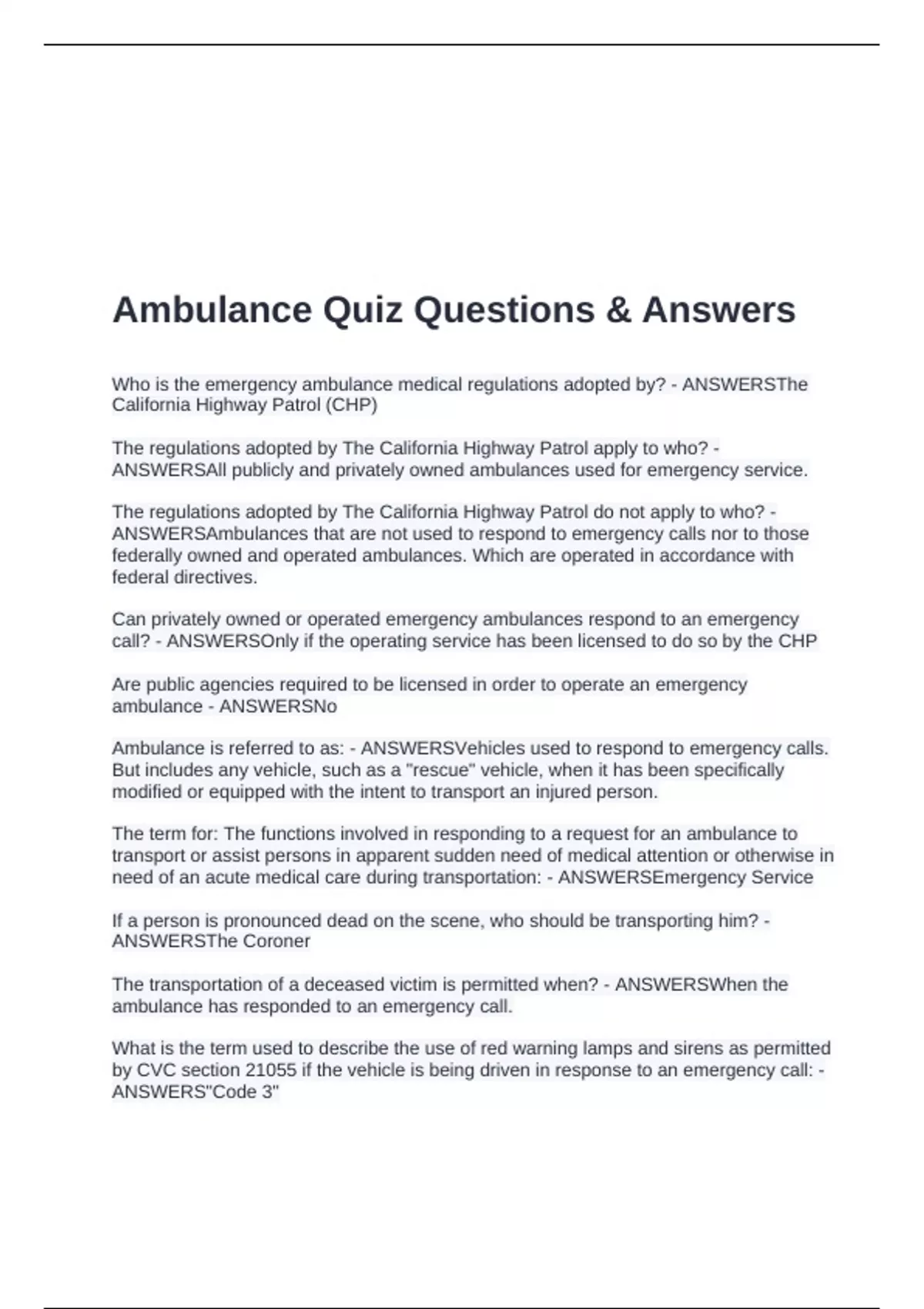 ambulance - ANSWERSNo