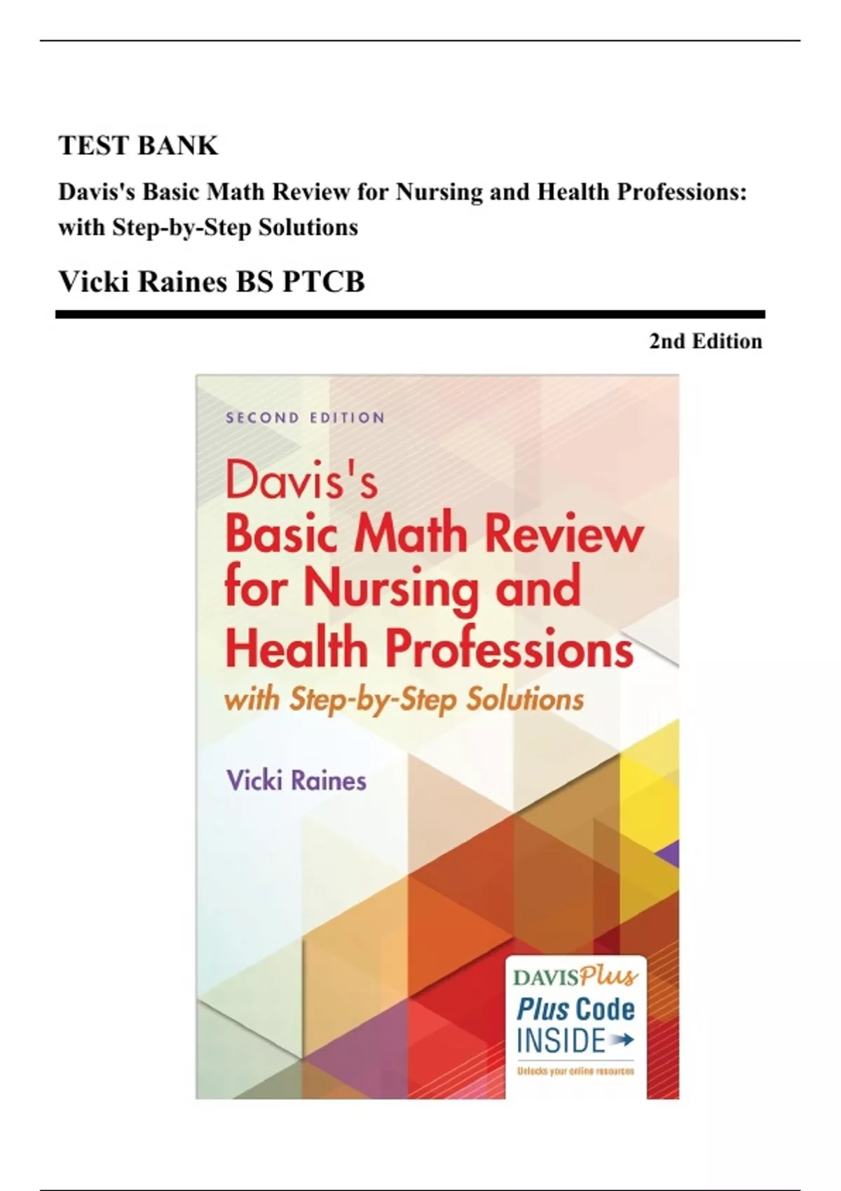 Test Bank - Davis's Basic Math Review for Nursing and Health Professions, 2nd Edition (Raines, 2017)