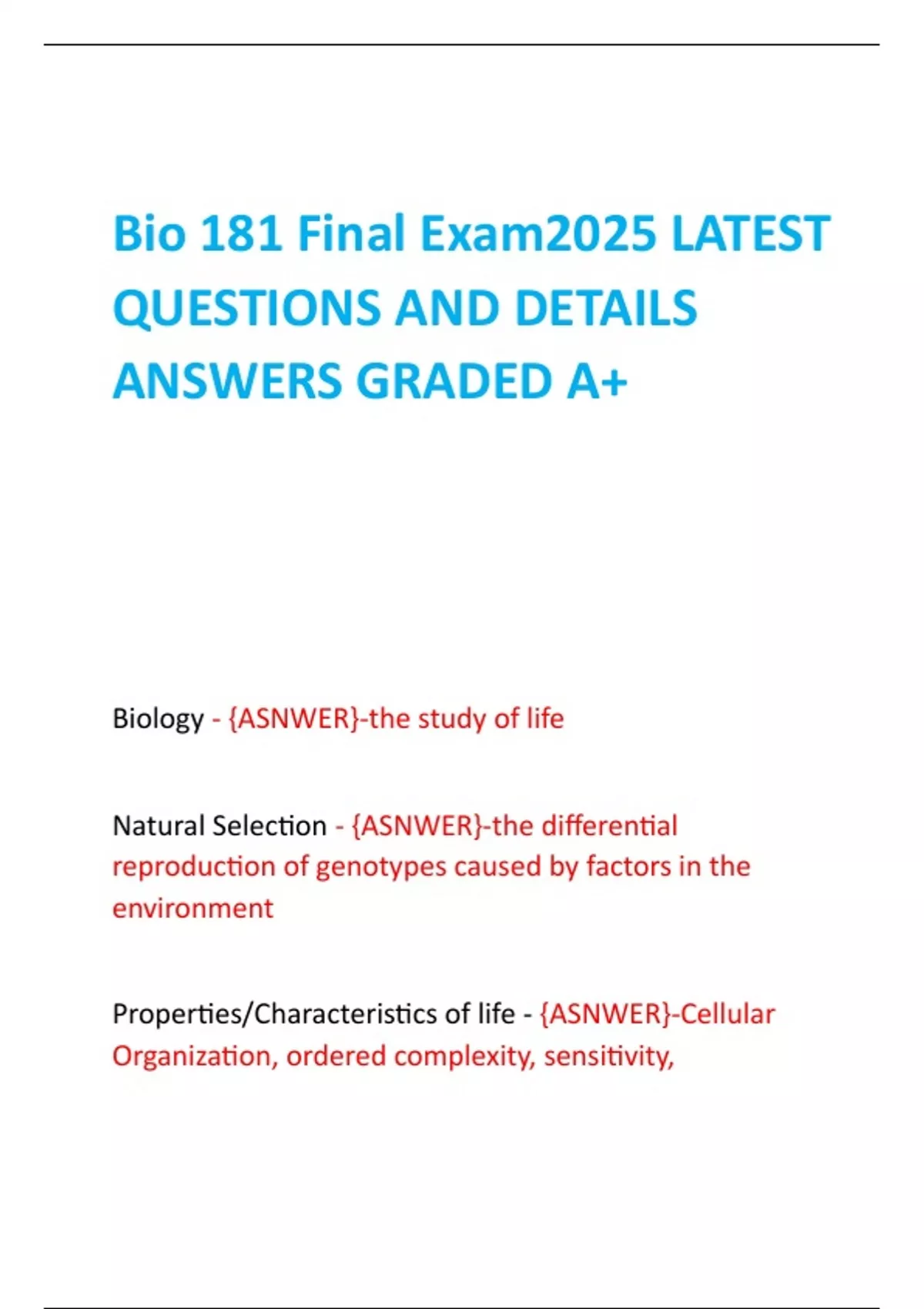 Biology - {ASNWER}-the study of life