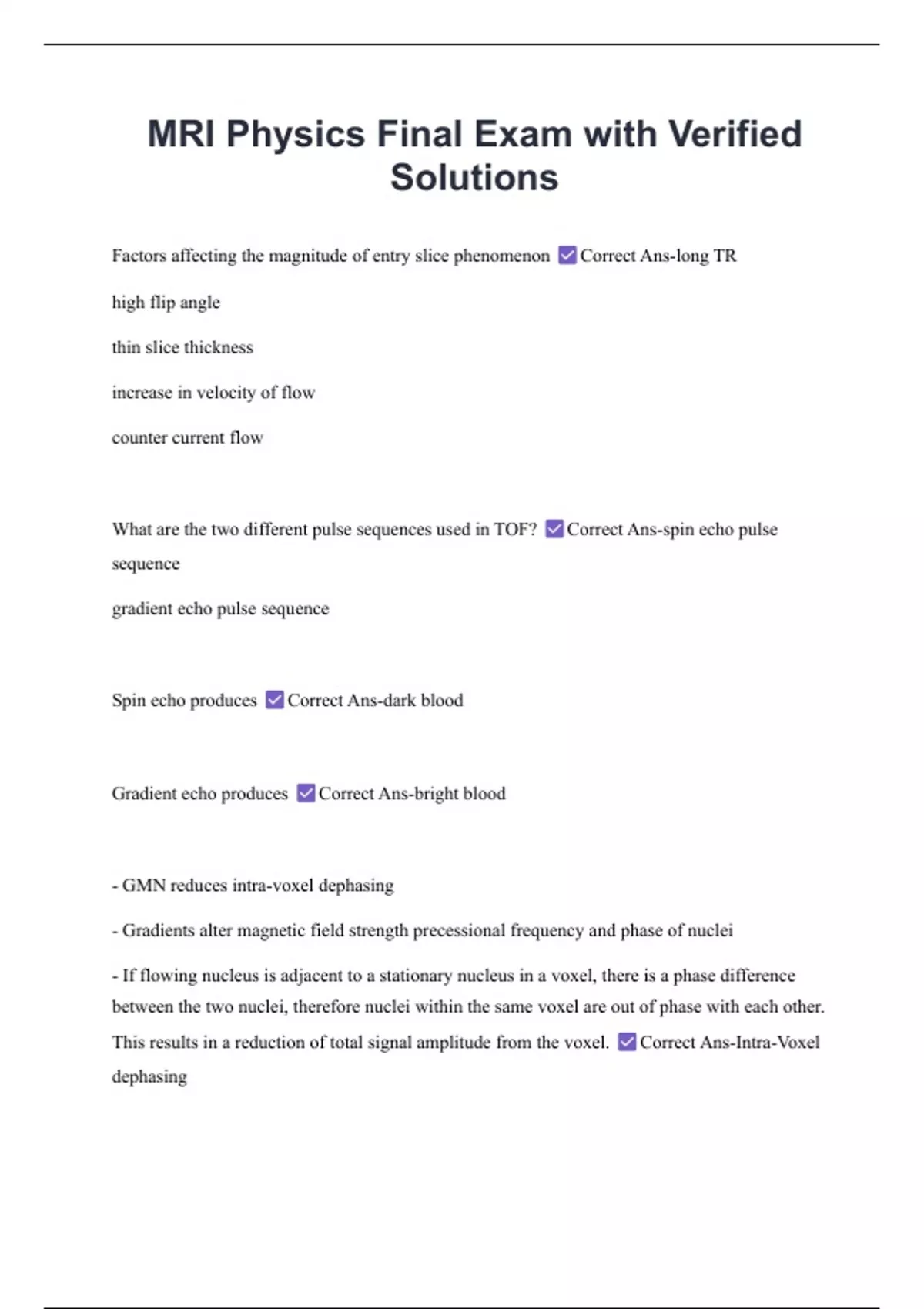 o Susceptible to "Venetian Blind" artifacts due to pulsatile flow Correct Ans-disadvantages of