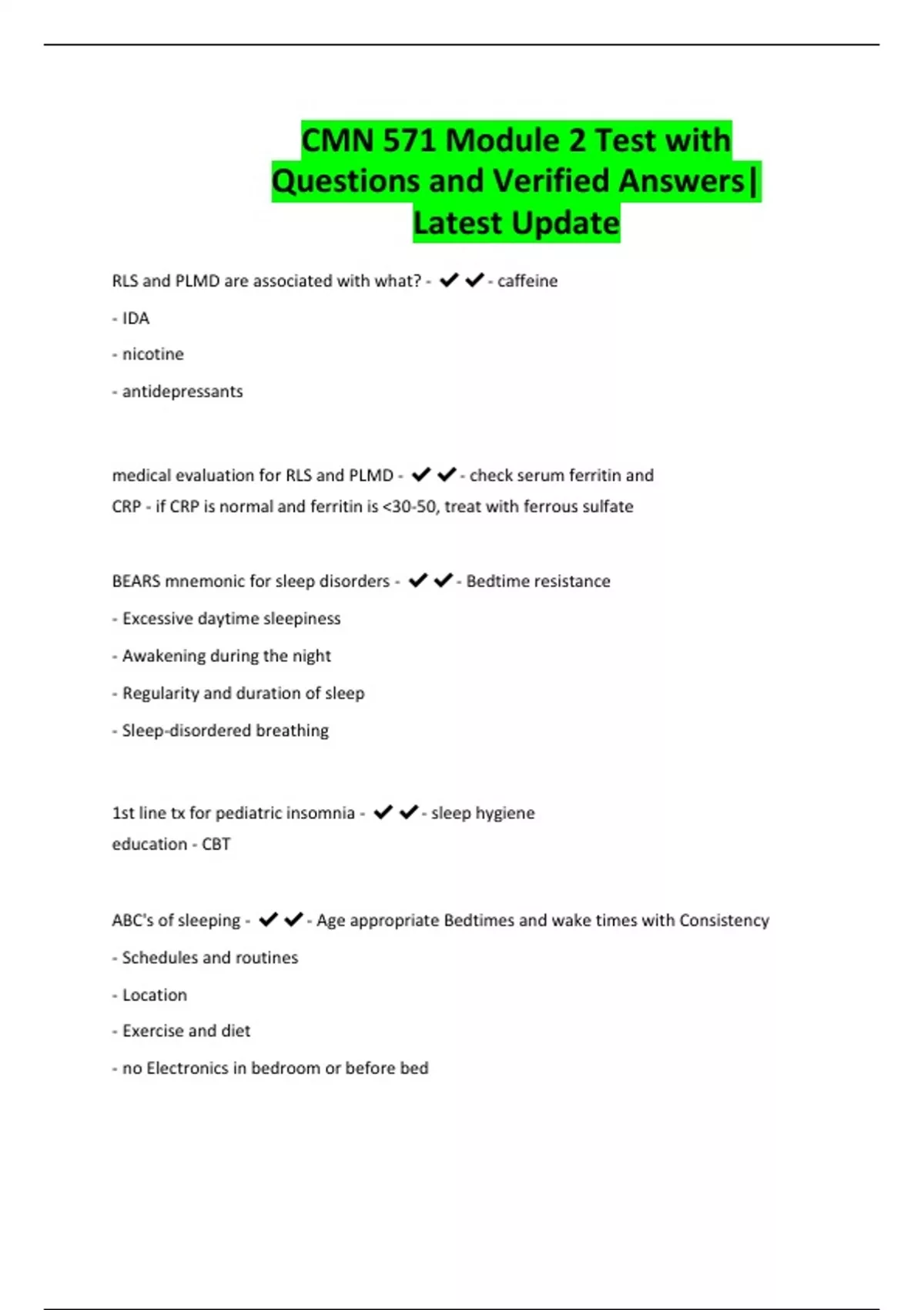 CMN 571 Module 2 Test with Questions and Verified Answers| Latest Update