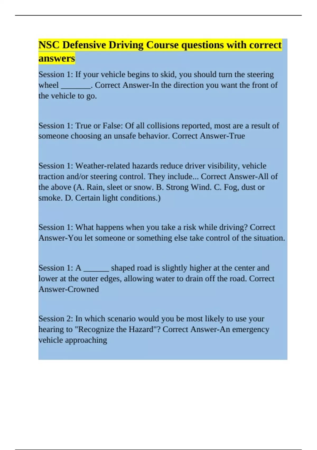 Session 1: If your vehicle begins to skid, you should turn the steering