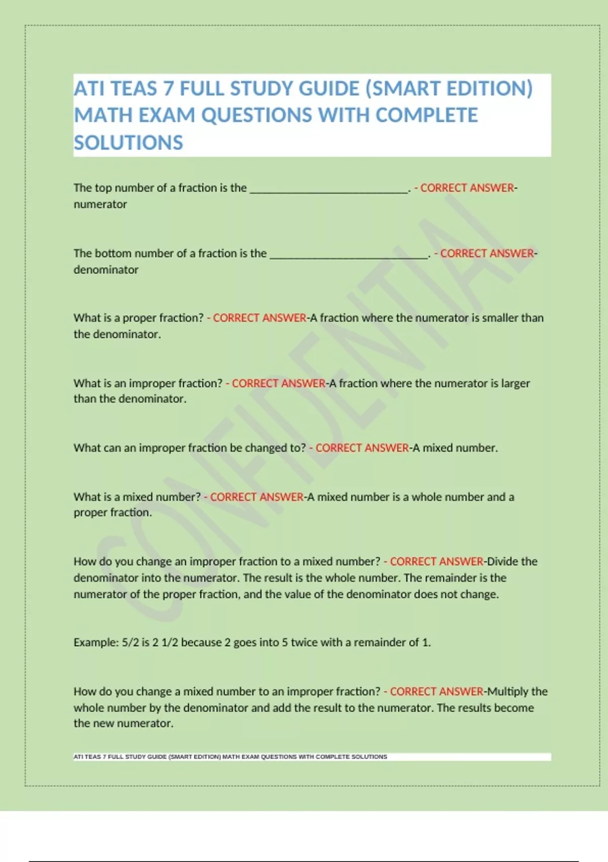 What can an improper fraction be changed to? - CORRECT ANSWER-A mixed number.