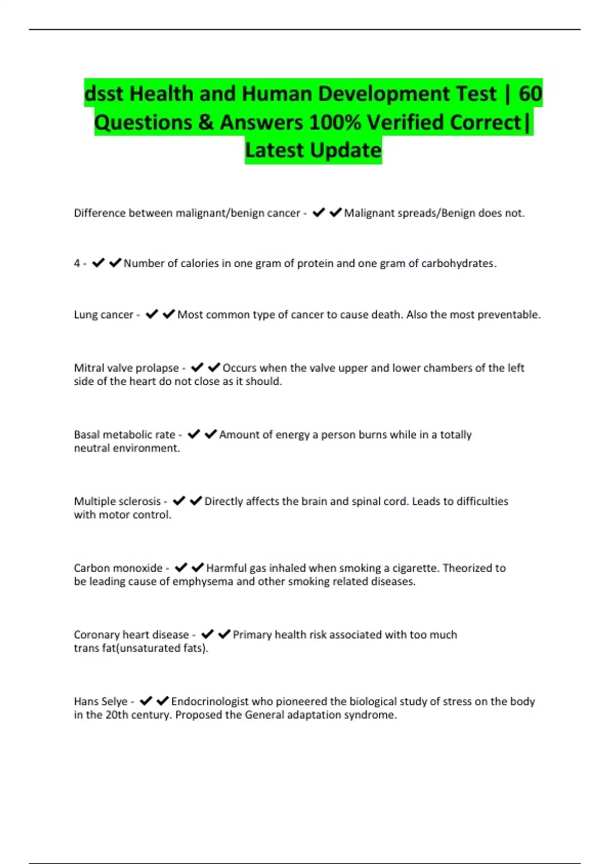 dsst Health and Human Development Test | 60 Questions & Answers 100% Verified Correct| Latest Update