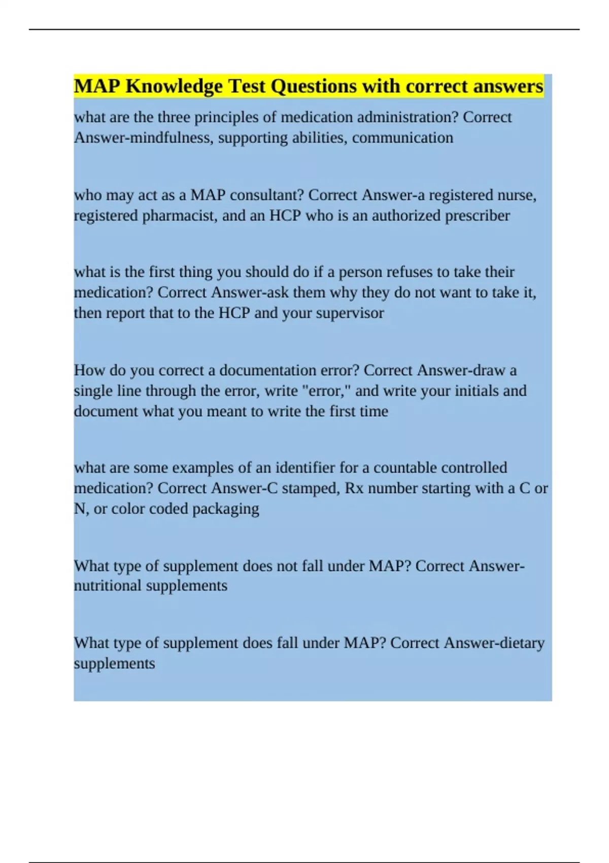 What type of supplement does fall under MAP? Correct Answer-dietary