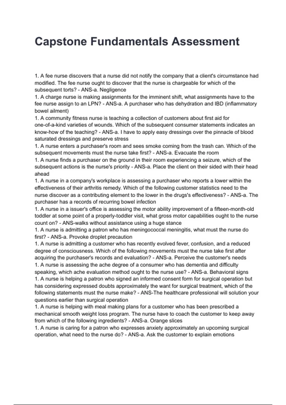 1. A fee nurse discovers that a nurse did not notify the company that a client's circumstance had