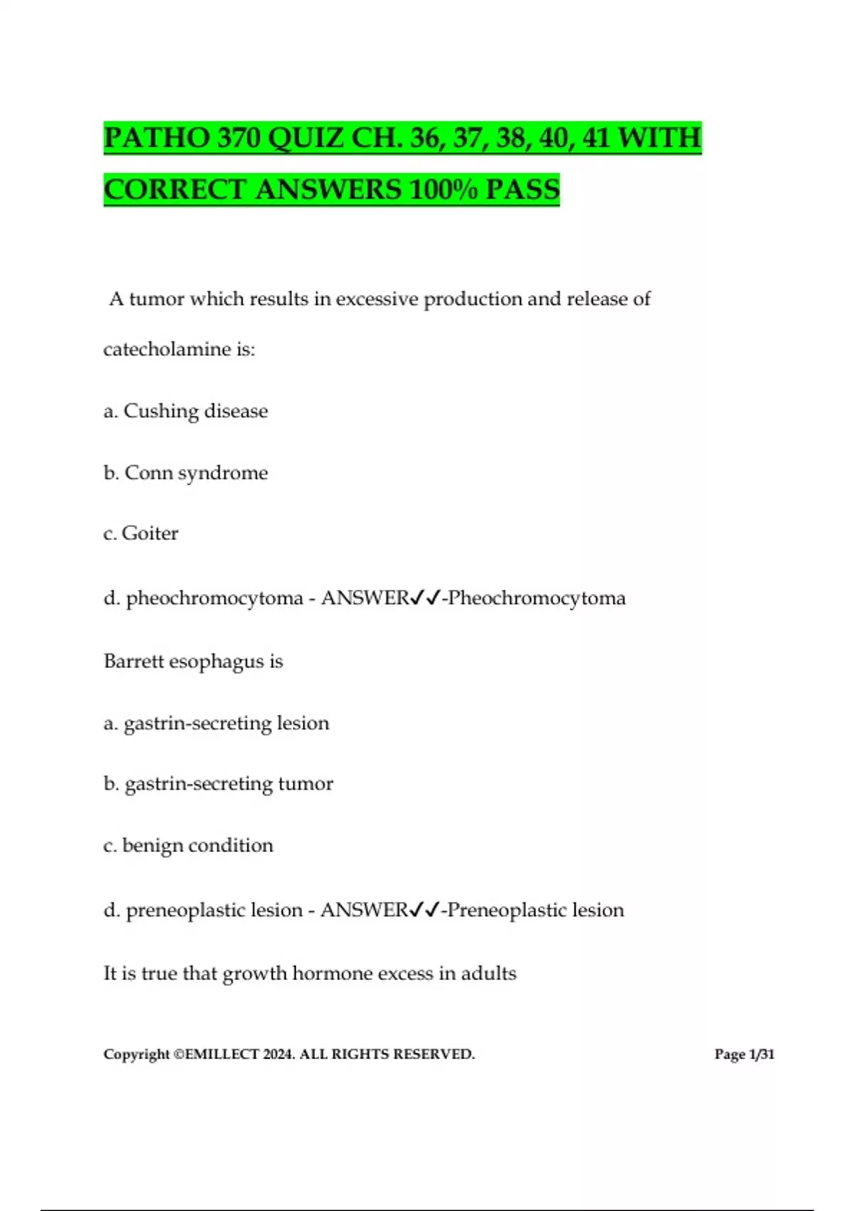 CORRECT ANSWERS 100% PASS
