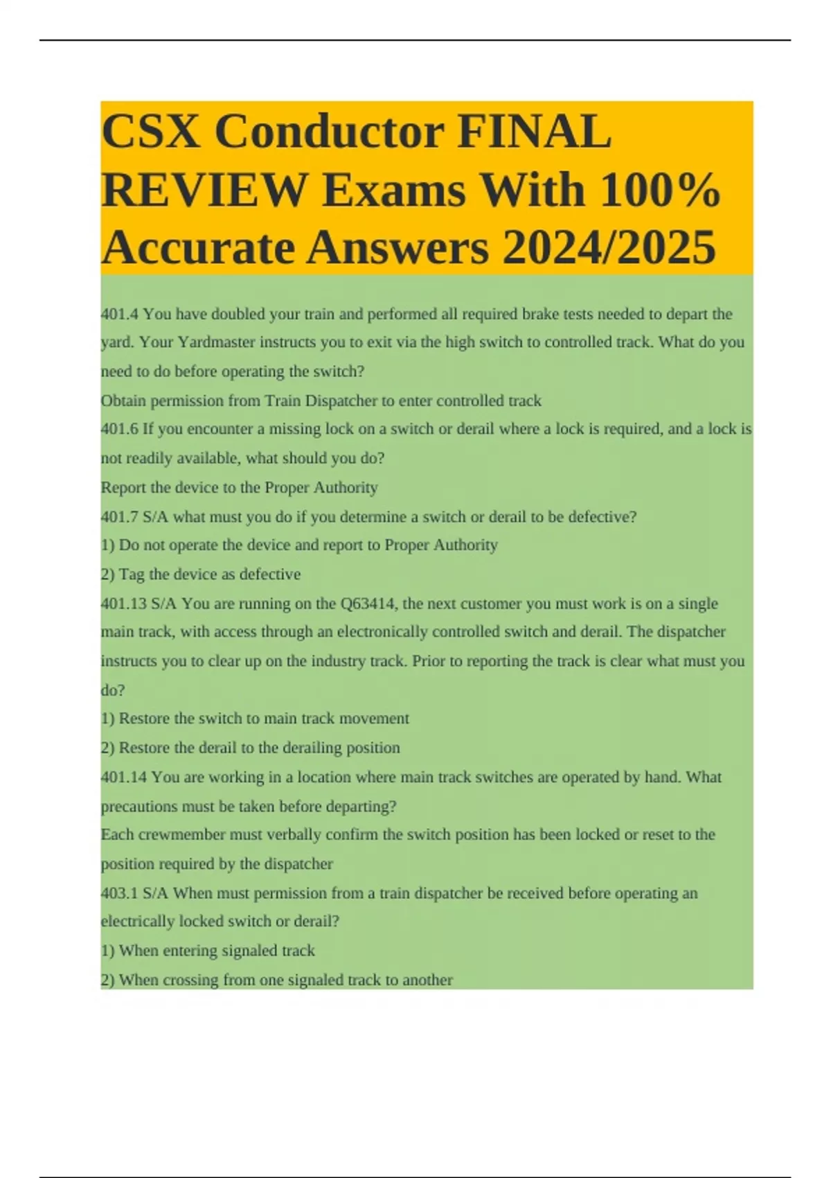 401.4 You have doubled your train and performed all required brake tests needed to depart the