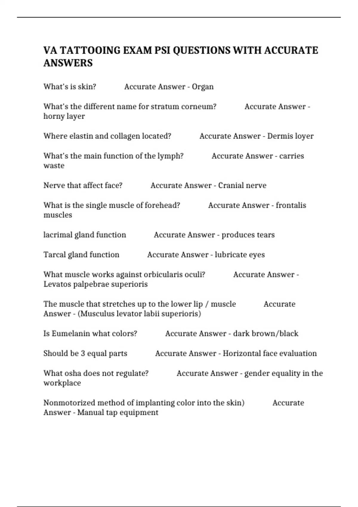 lacrimal gland function Accurate Answer - produces tears