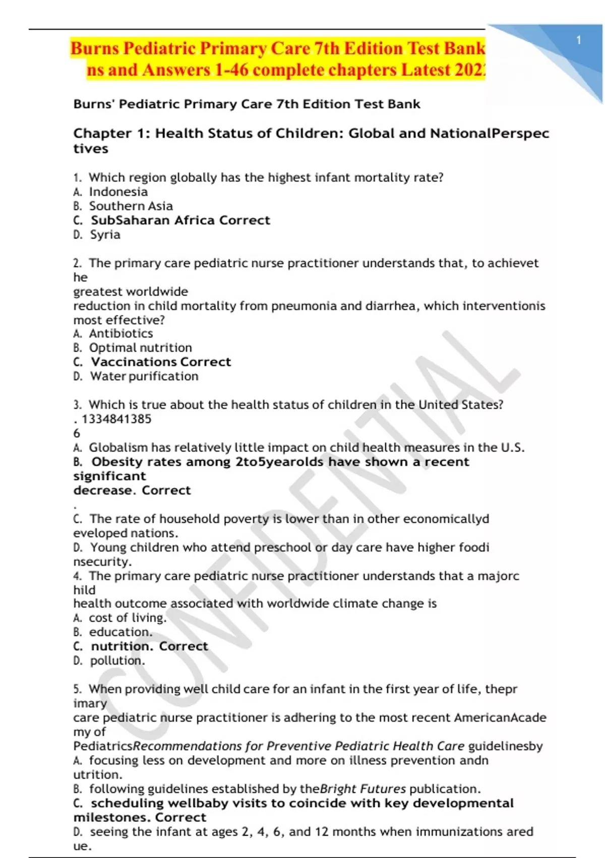 Burns Pediatric Primary Care 7th Edition Test Bank Questio