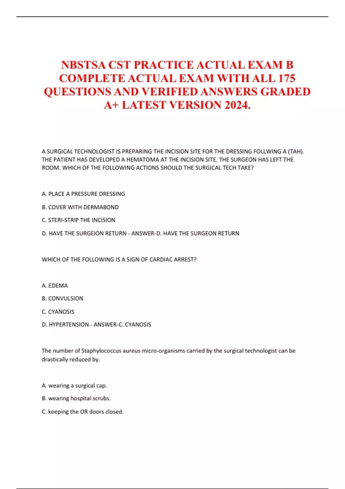 NBSTSA CST PRACTICE ACTUAL EXAM B