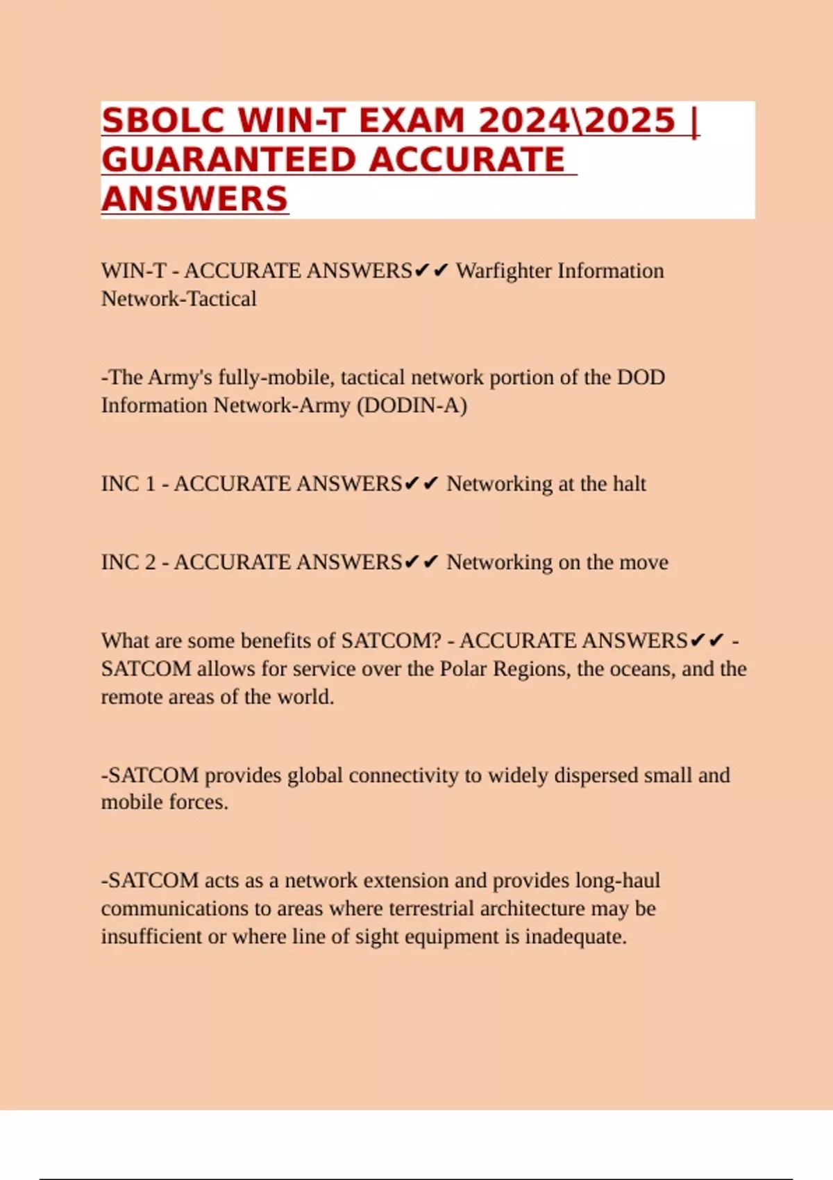 WIN-T - ACCURATE ANSWERS✔✔ Warfighter Information