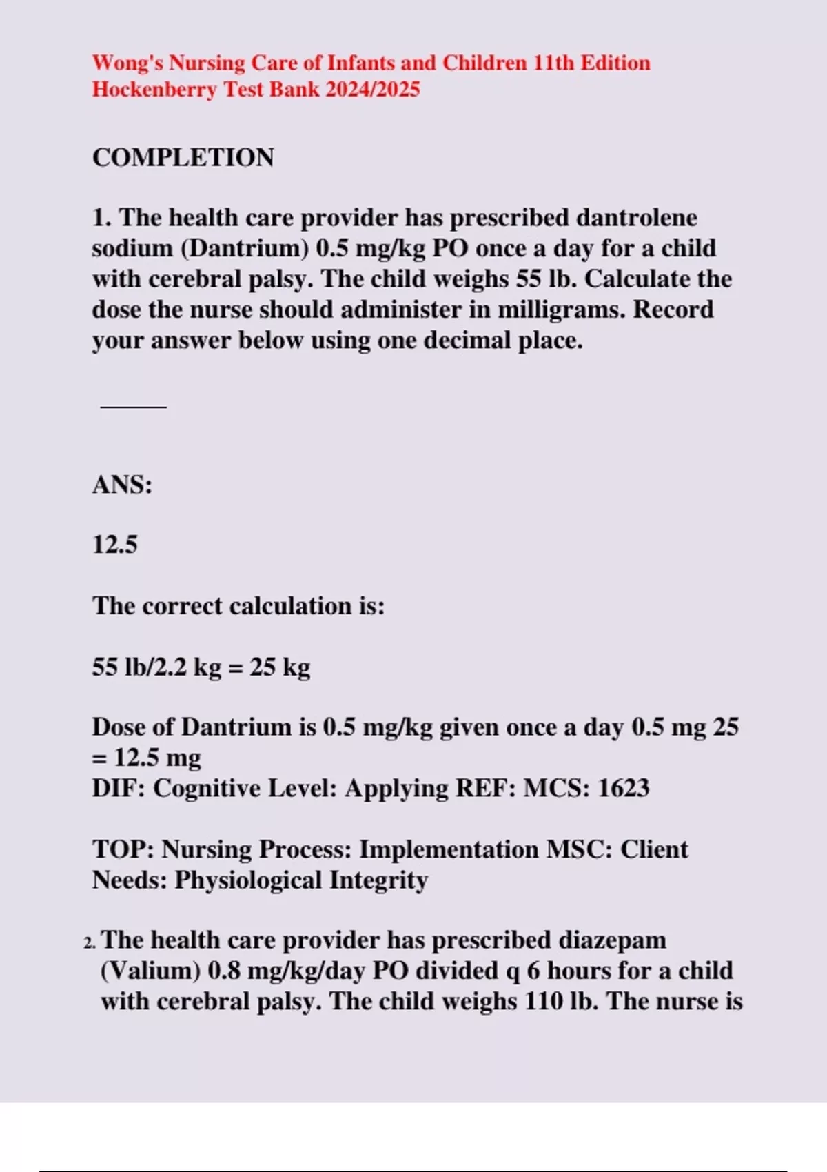 with cerebral palsy. The child weighs 55 lb. Calculate the