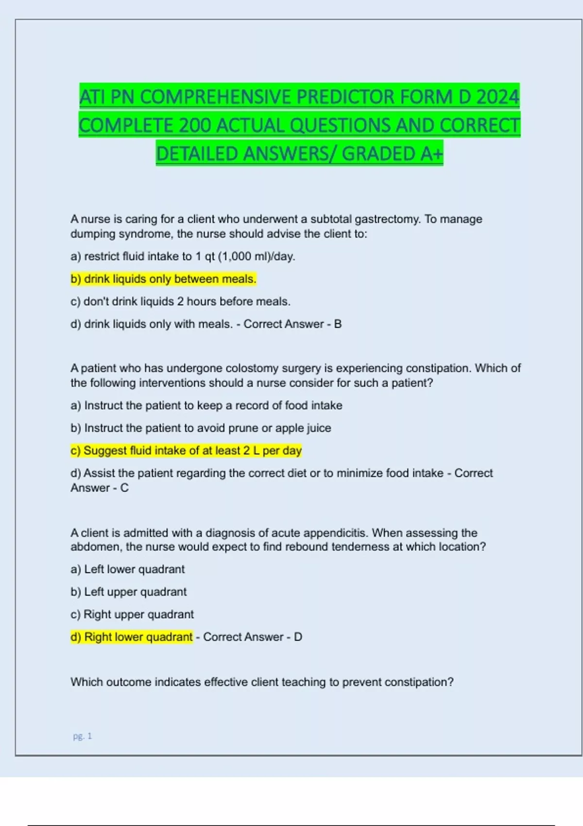 COMPLETE 200 ACTUAL QUESTIONS AND CORRECT
