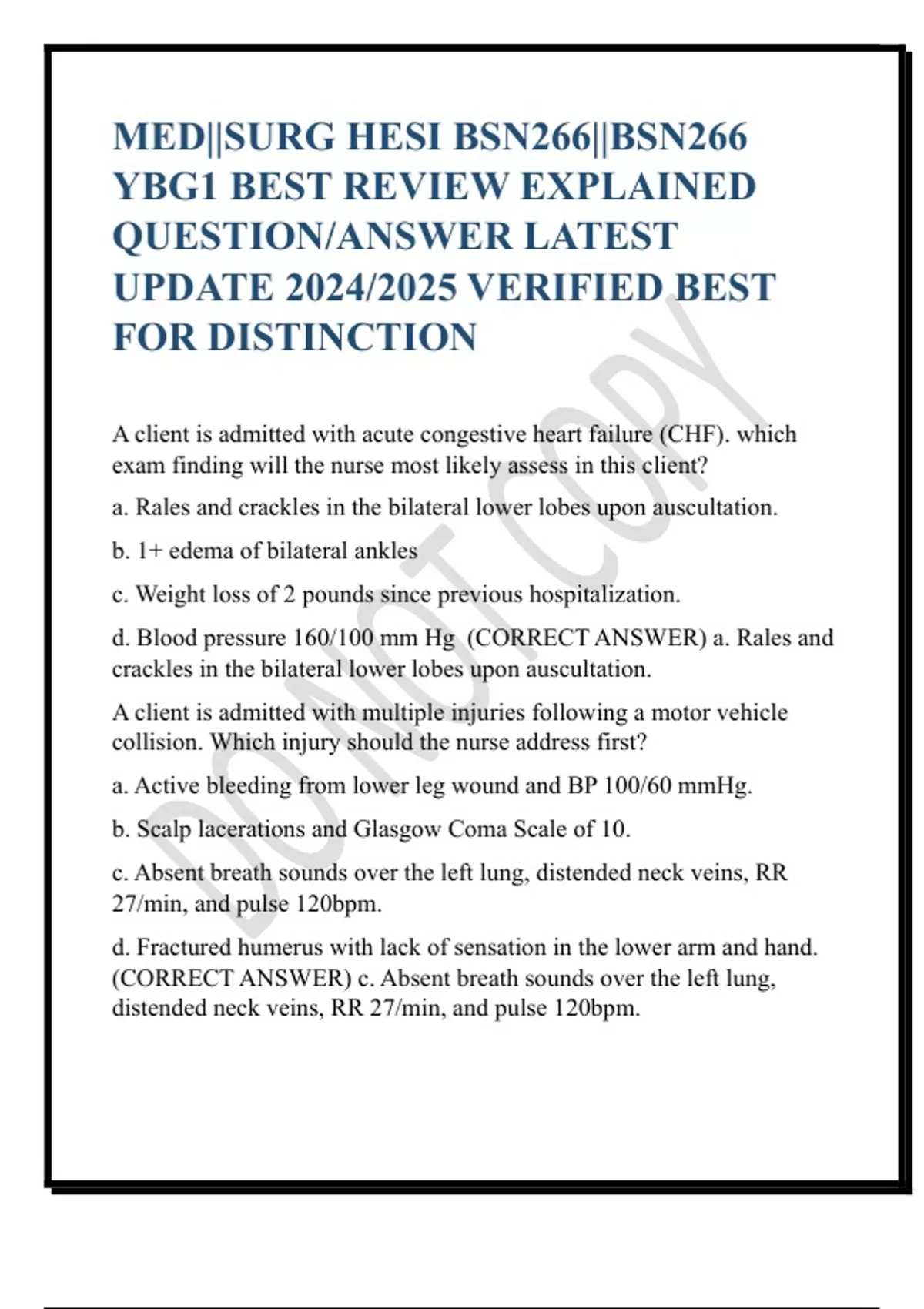 d. Blood pressure 160/100 mm Hg (CORRECT ANSWER) a. Rales and