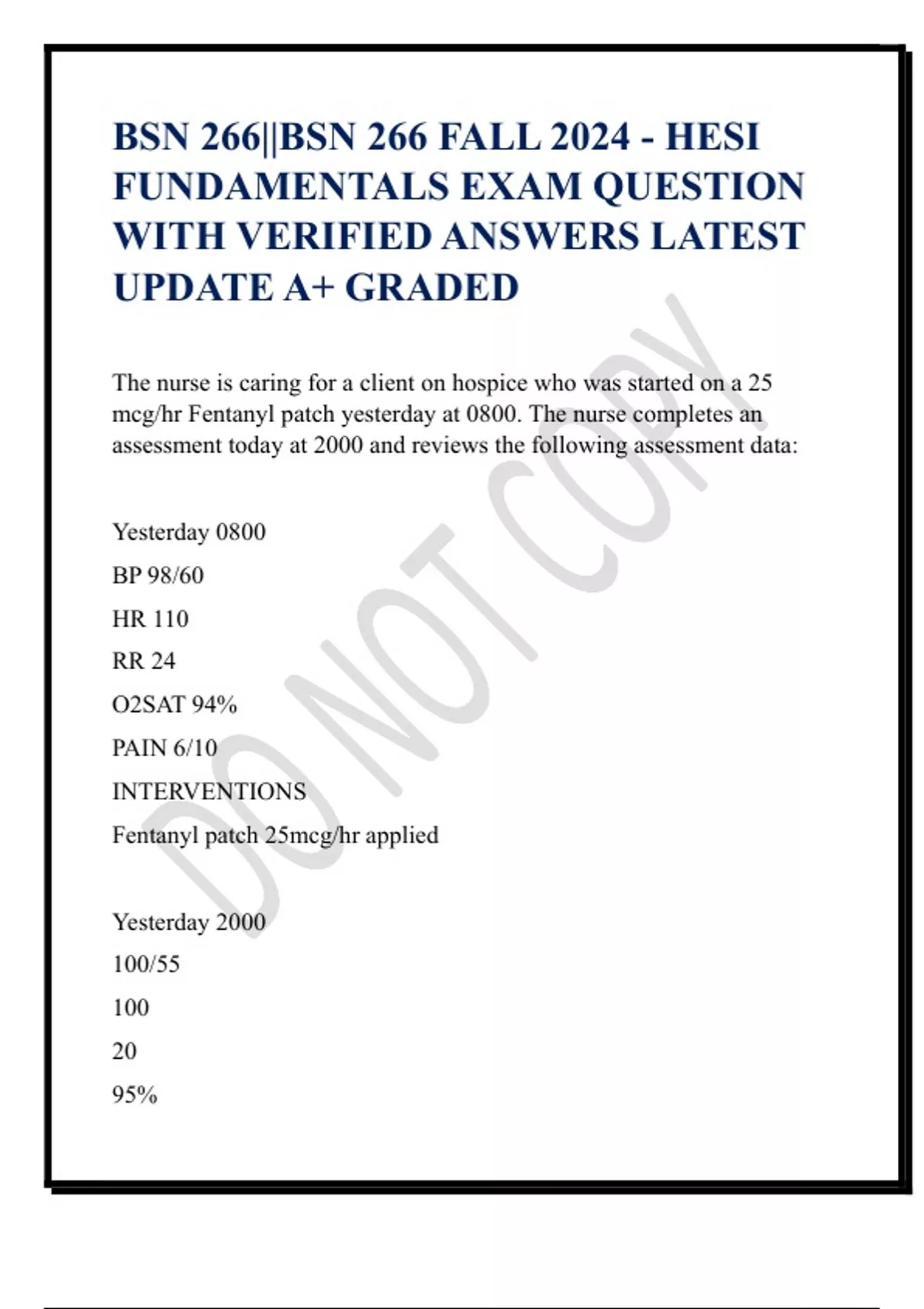 BSN 266||BSN 266 FALL 2024 - HESI FUNDAMENTALS EXAM QUESTION WITH VERIFIED ANSWERS LATEST UPDATE A+ GRADED