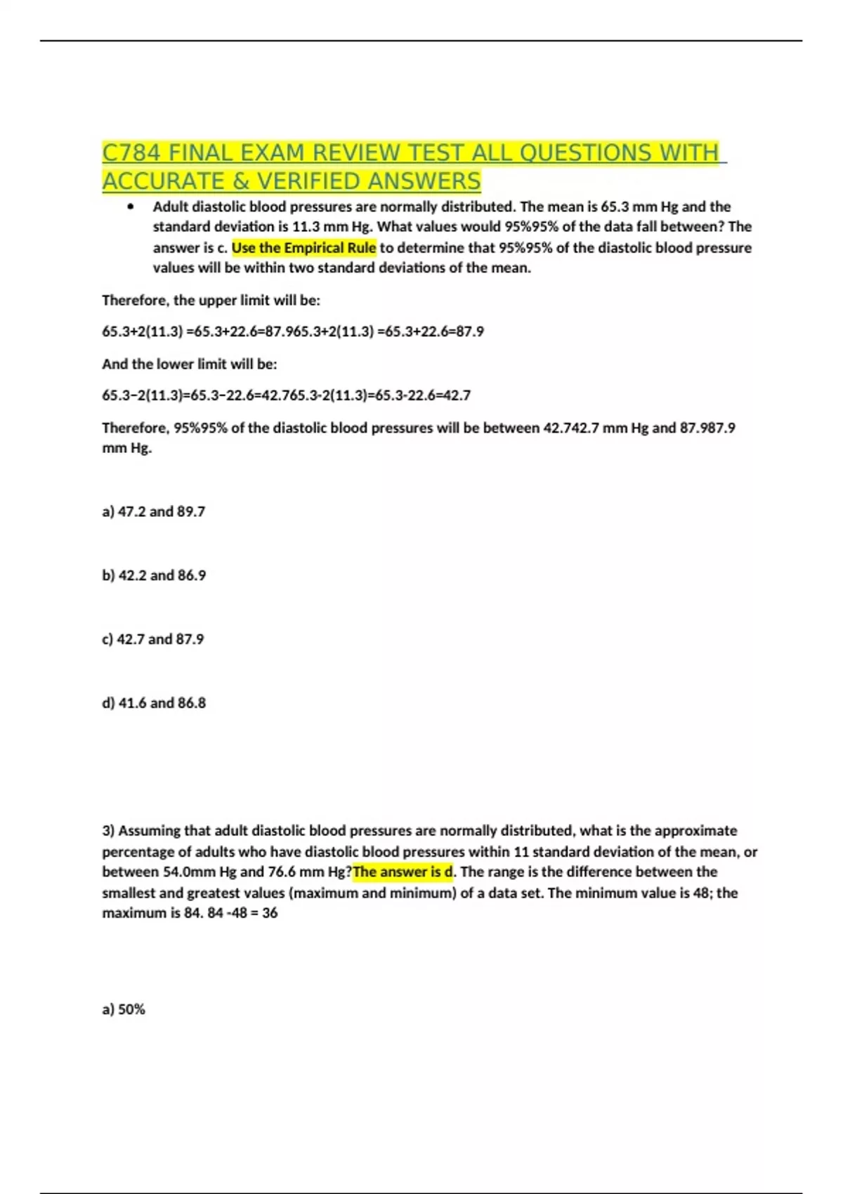3) Assuming that adult diastolic blood pressures are normally distributed, what is the approximate