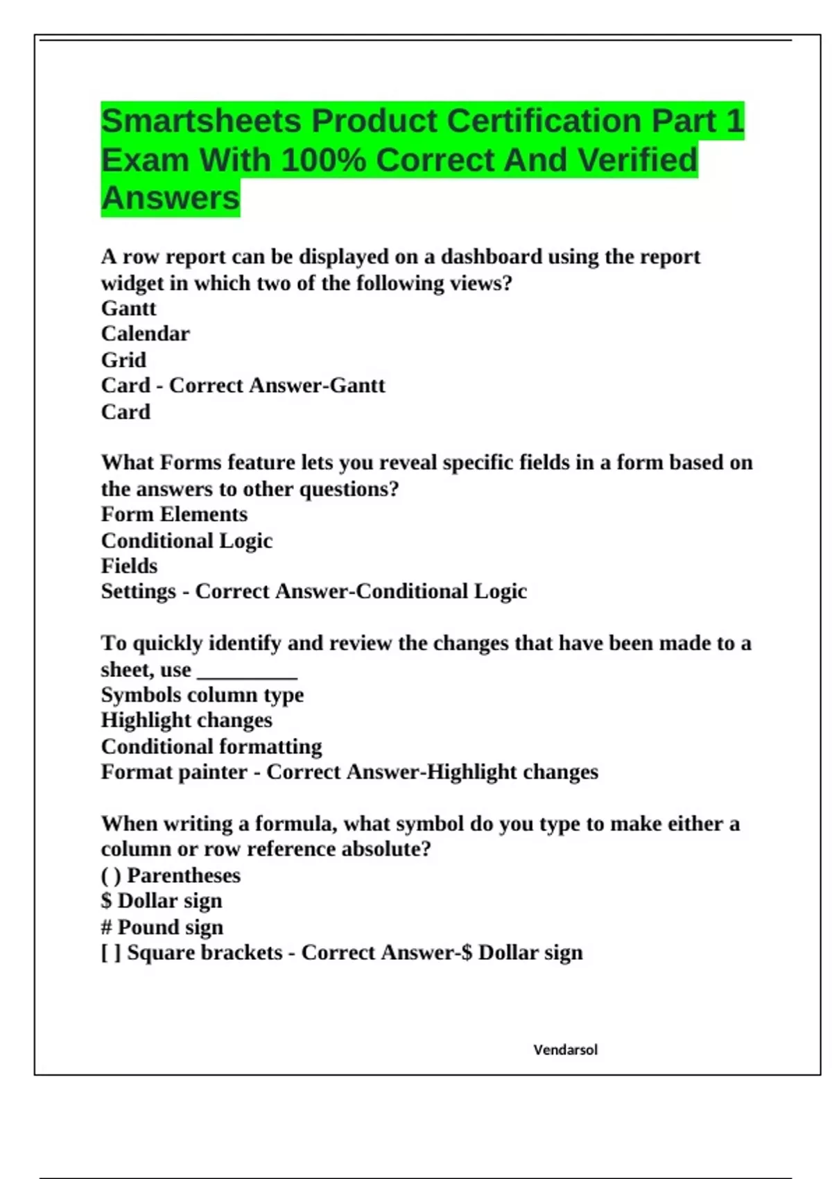 Smartsheet Practice Exam With 100% Correct And Verified Answers