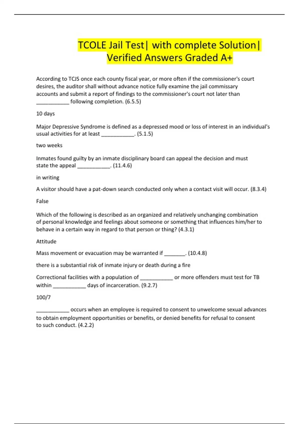 TCOLE Jail Test| with complete Solution|