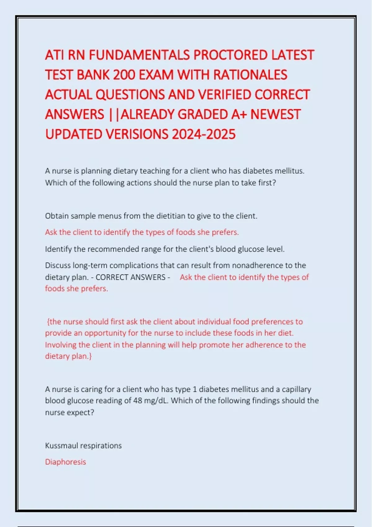 ATI RN FUNDAMENTALS PROCTORED LATEST TEST BANK 200 EXAM WITH RATIONALES ACTUAL QUESTIONS AND VERIFIED CORRECT ANSWERS ||ALREADY GRADED A+ NEWEST UPDATED VERISIONS ATI RN FUNDAMENTALS PROCTORED LATEST TEST BANK 200 EXAM WITH RATIONALES ACTUAL QUESTIONS AND VERIFIED CORRECT ANSWERS ||ALREADY GRADED A+ NEWEST UPDATED VERISIONS ATI RN FUNDAMENTALS PROCTORED LATEST TEST BANK 200 EXAM WITH RATIONALES ACTUAL QUESTIONS AND VERIFIED CORRECT ANSWERS ||ALREADY GRADED A+ NEWEST UPDATED VERISIONS