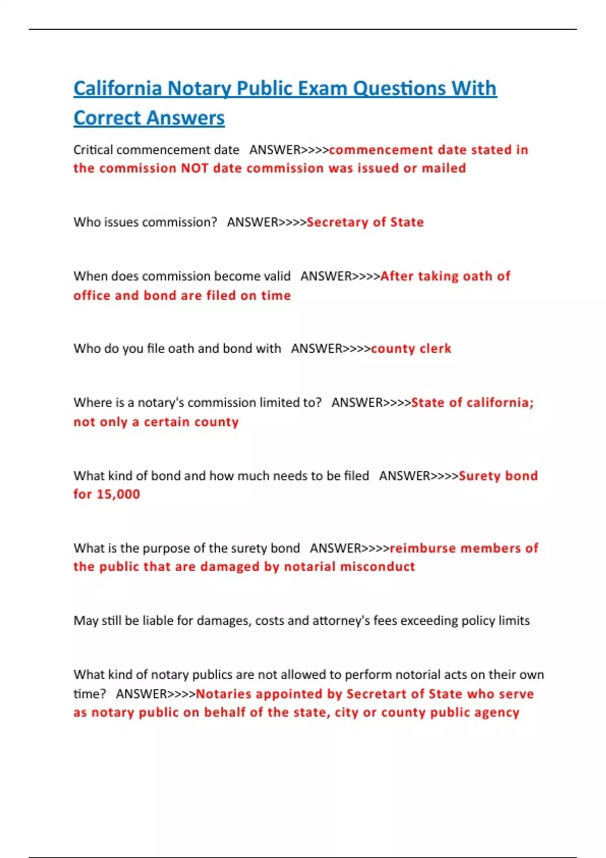 Where is a notary's commission limited to? ANSWER>>>>State of california;