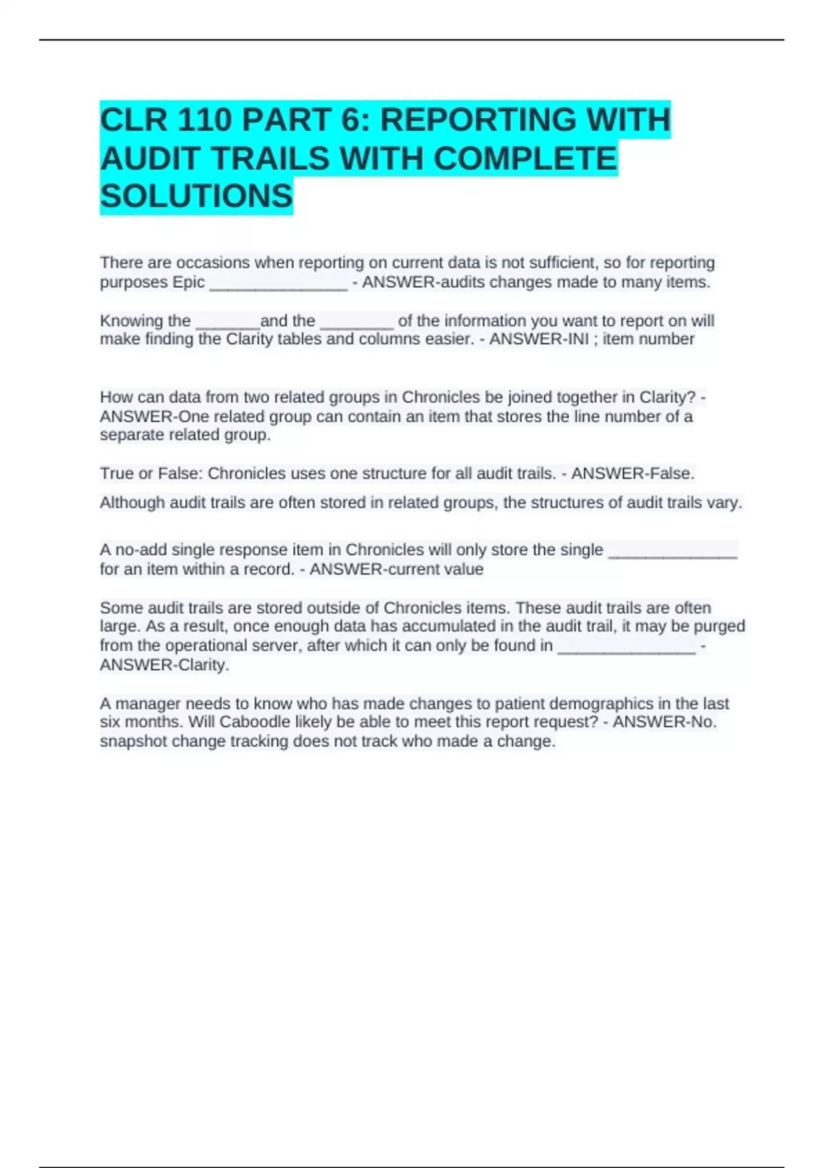 True or False: Chronicles uses one structure for all audit trails. - ANSWER-False.