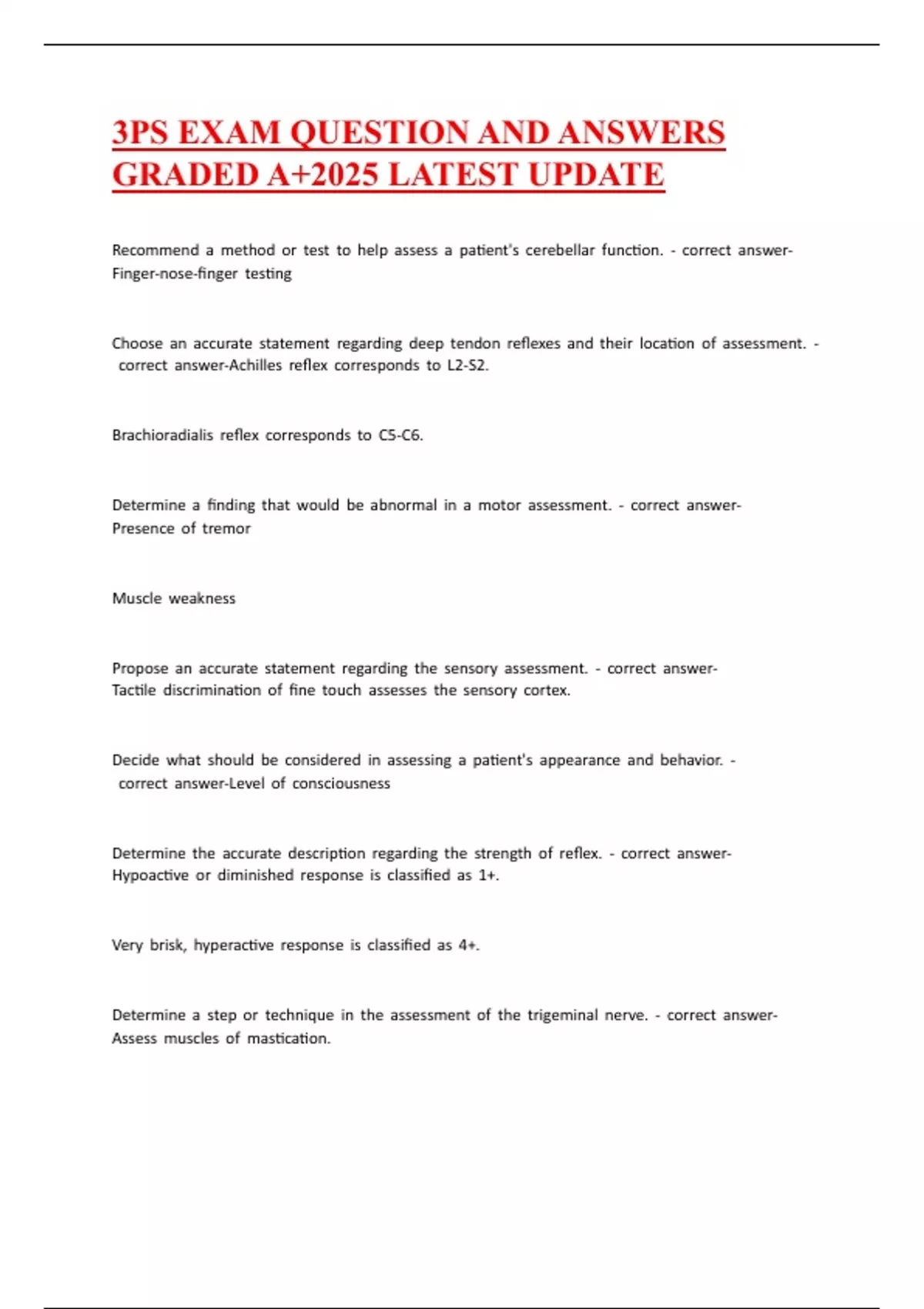 3PS EXAM QUESTION AND ANSWERS