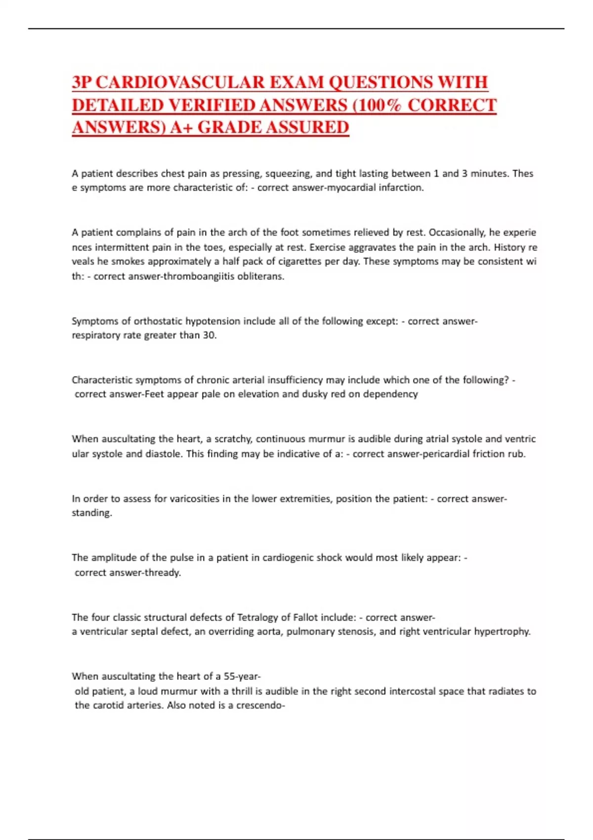 3P CARDIOVASCULAR EXAM QUESTIONS WITH