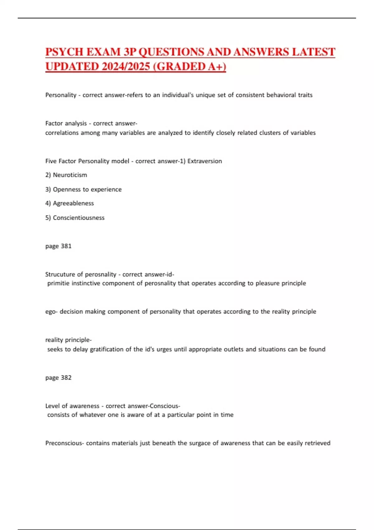 PSYCH EXAM 3P QUESTIONS AND ANSWERS LATEST