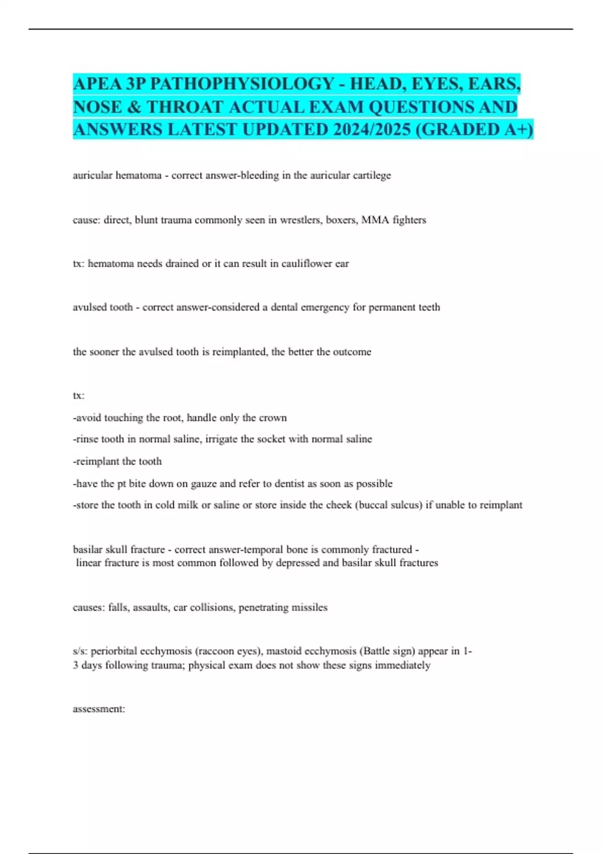 APEA 3P PATHOPHYSIOLOGY - HEAD, EYES, EARS,