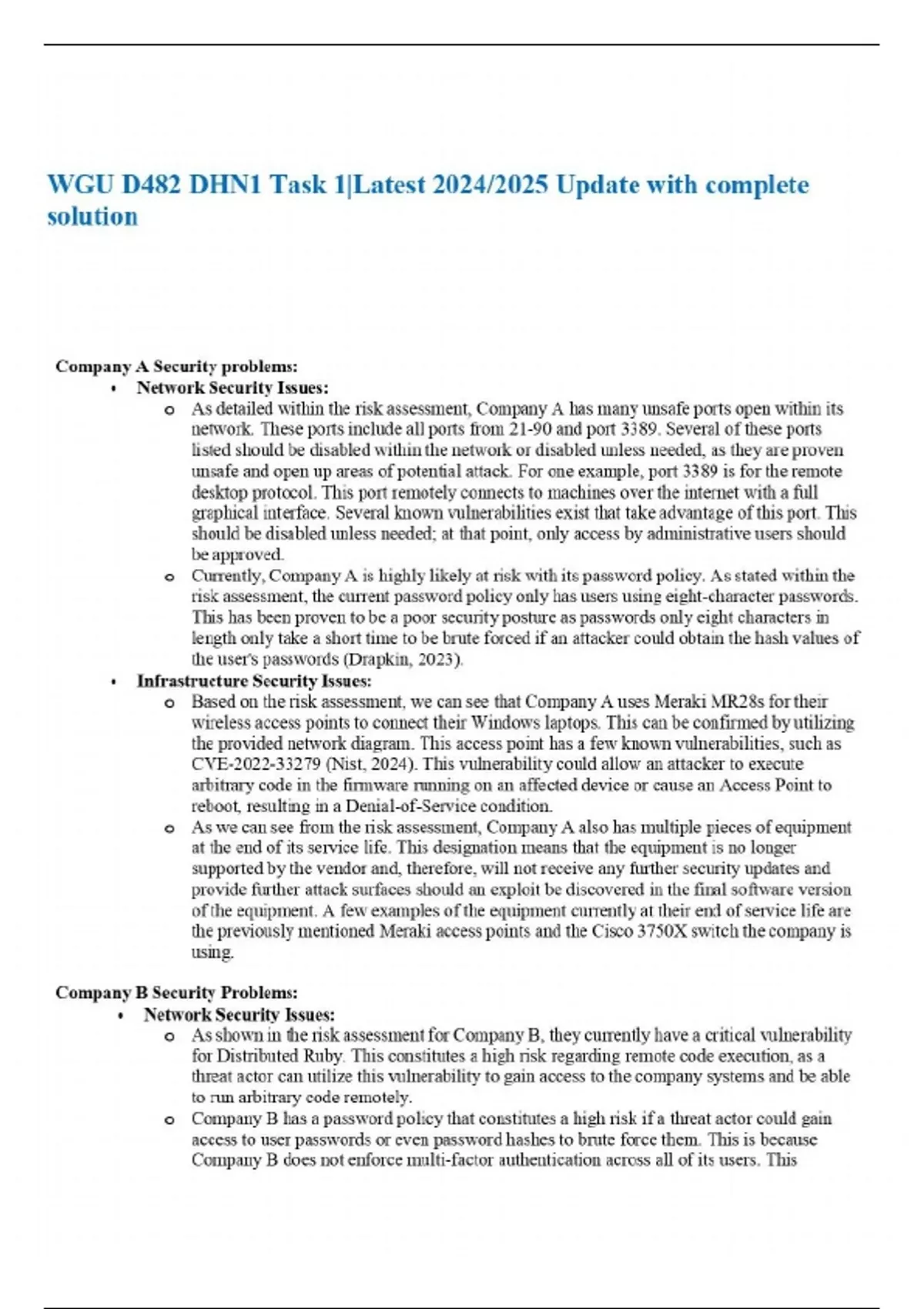 WGU D482 DHN1 Task 1|Latest 2024/2025 Update with complete solution D482 Task 1 - Full task - pass