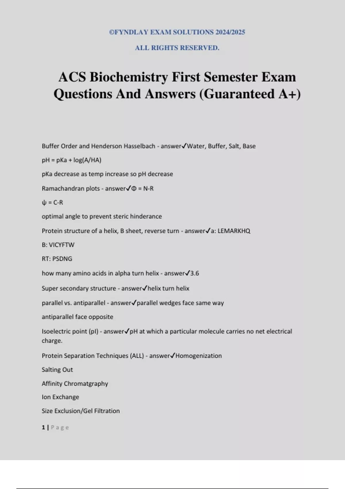 ACS Biochemistry First Semester Exam
