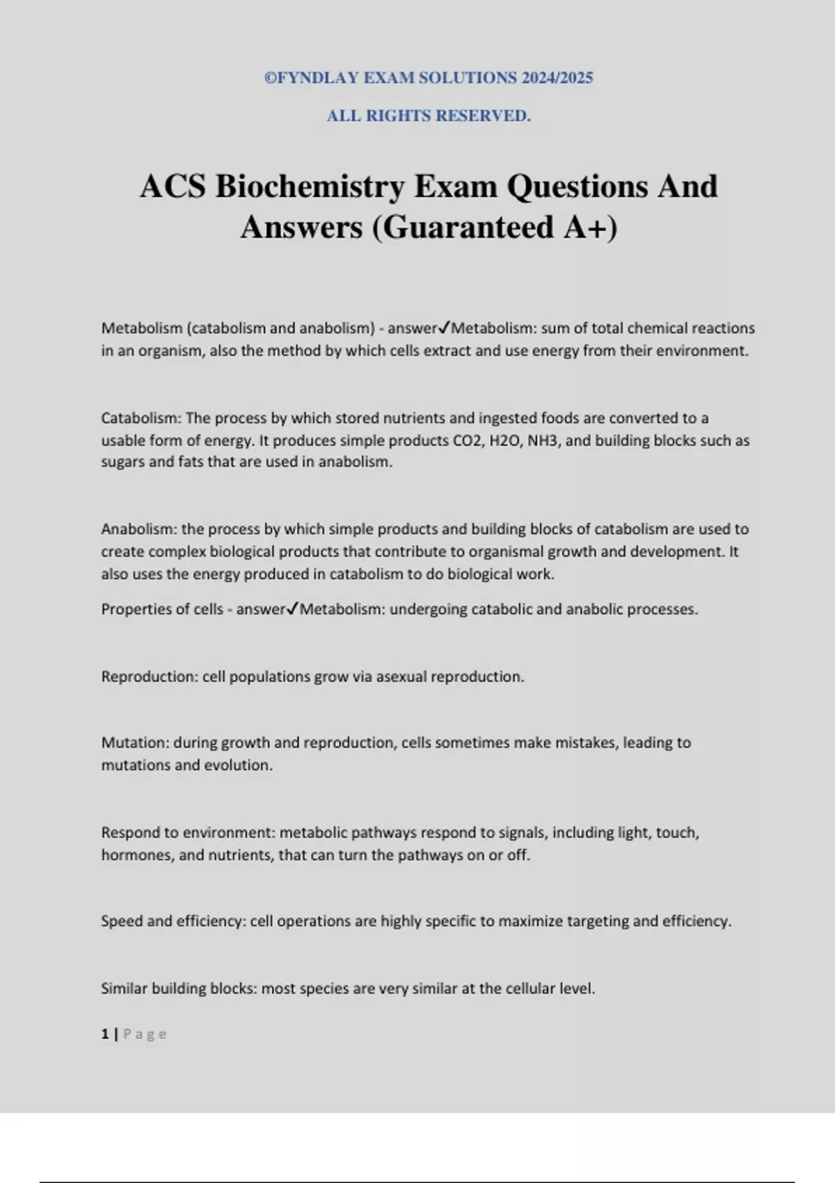 ACS Biochemistry Exam Questions And Answers (Guaranteed A+)