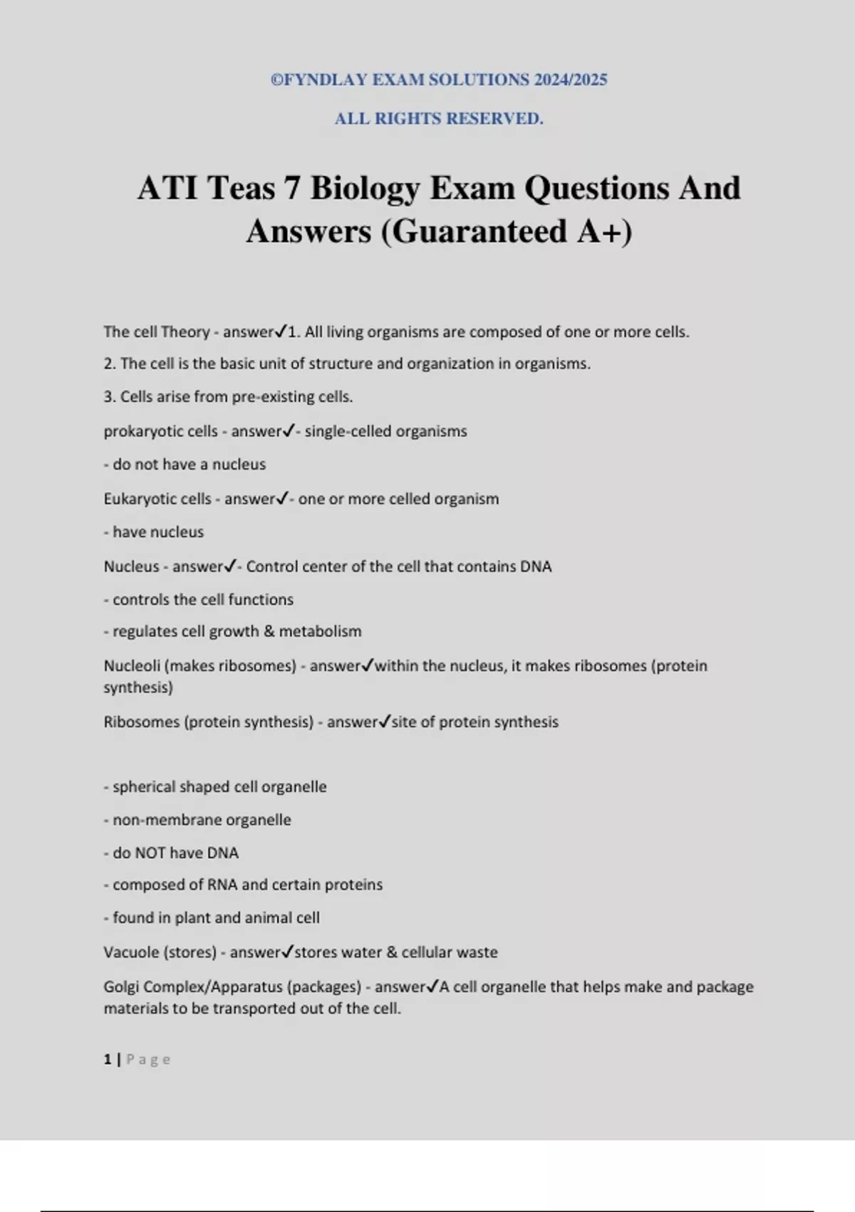 ATI Teas 7 Biology Exam Questions And