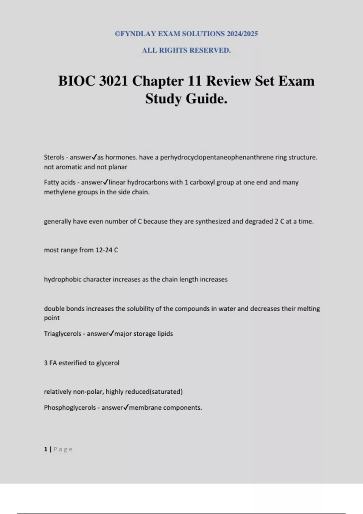BIOC 3021 Chapter 11 Review Set Exam