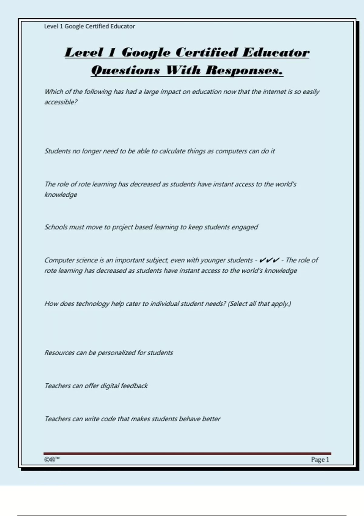 ,Level 1 Google Certified Educator