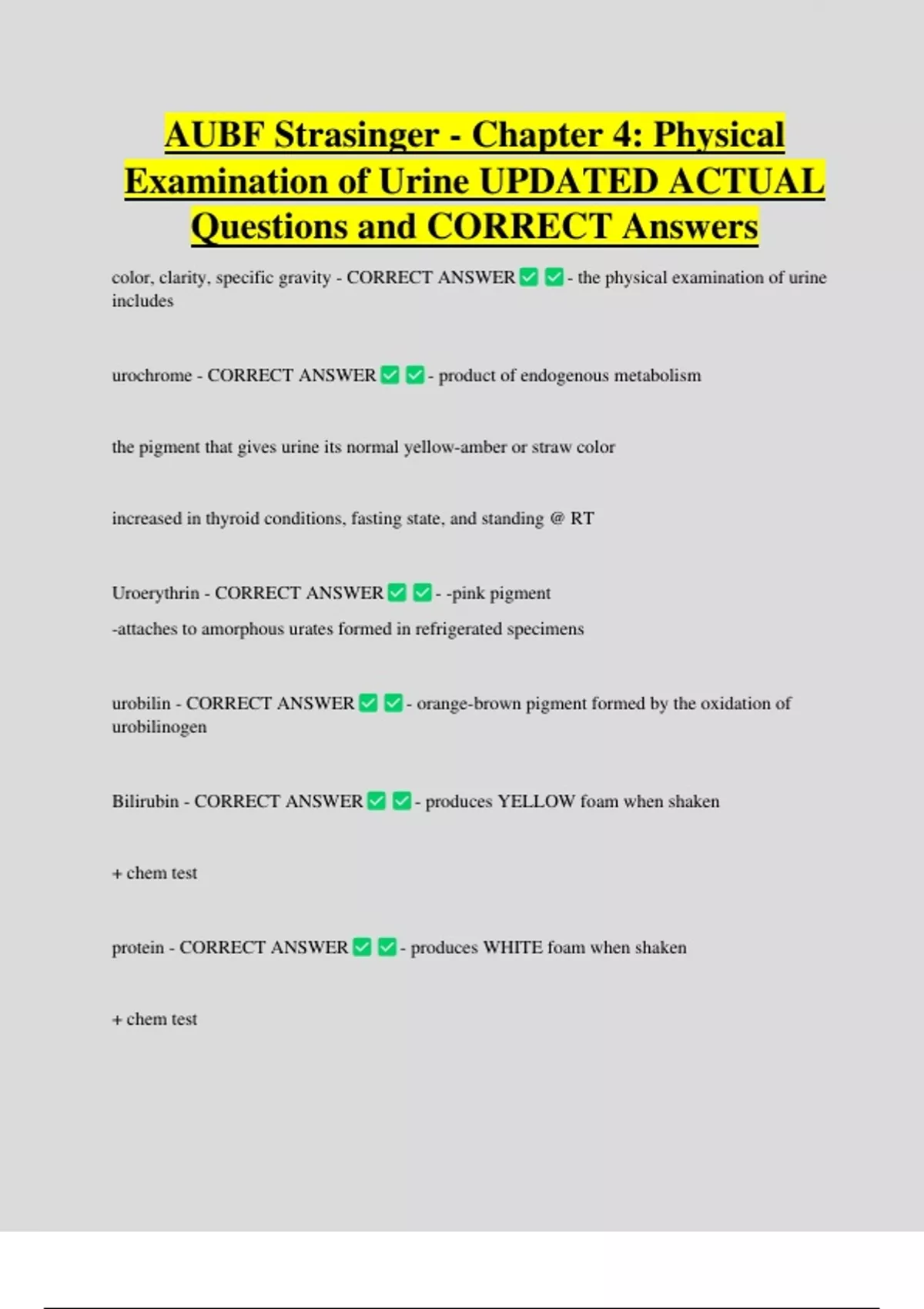 AUBF Strasinger - Chapter 4: Physical Examination of Urine UPDATED ACTUAL Questions and CORRECT Answers