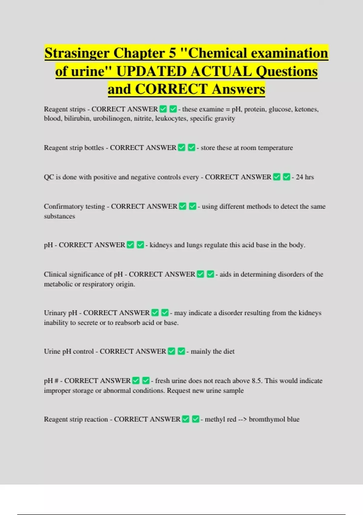 Reagent strips - CORRECT ANSWER - these examine = pH, protein, glucose, ketones,