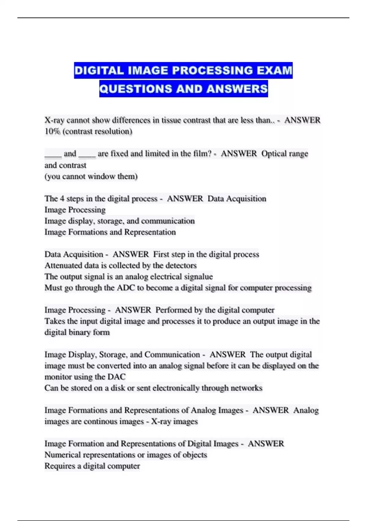 DIGITAL IMAGE PROCESSING EXAM QUESTIONS AND ANSWERS....