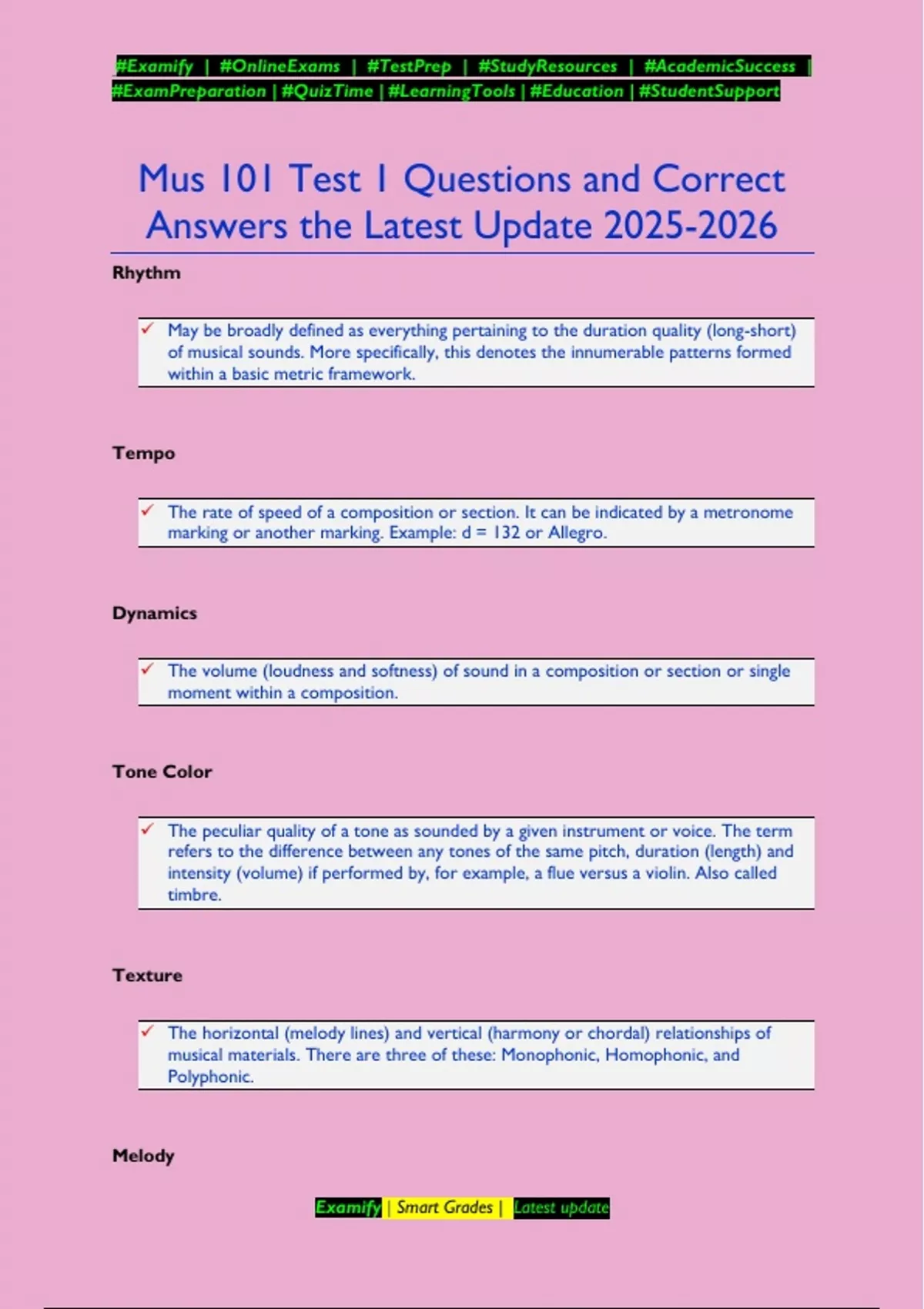Mus 101 Test 1 Questions and Correct Answers the Latest Update