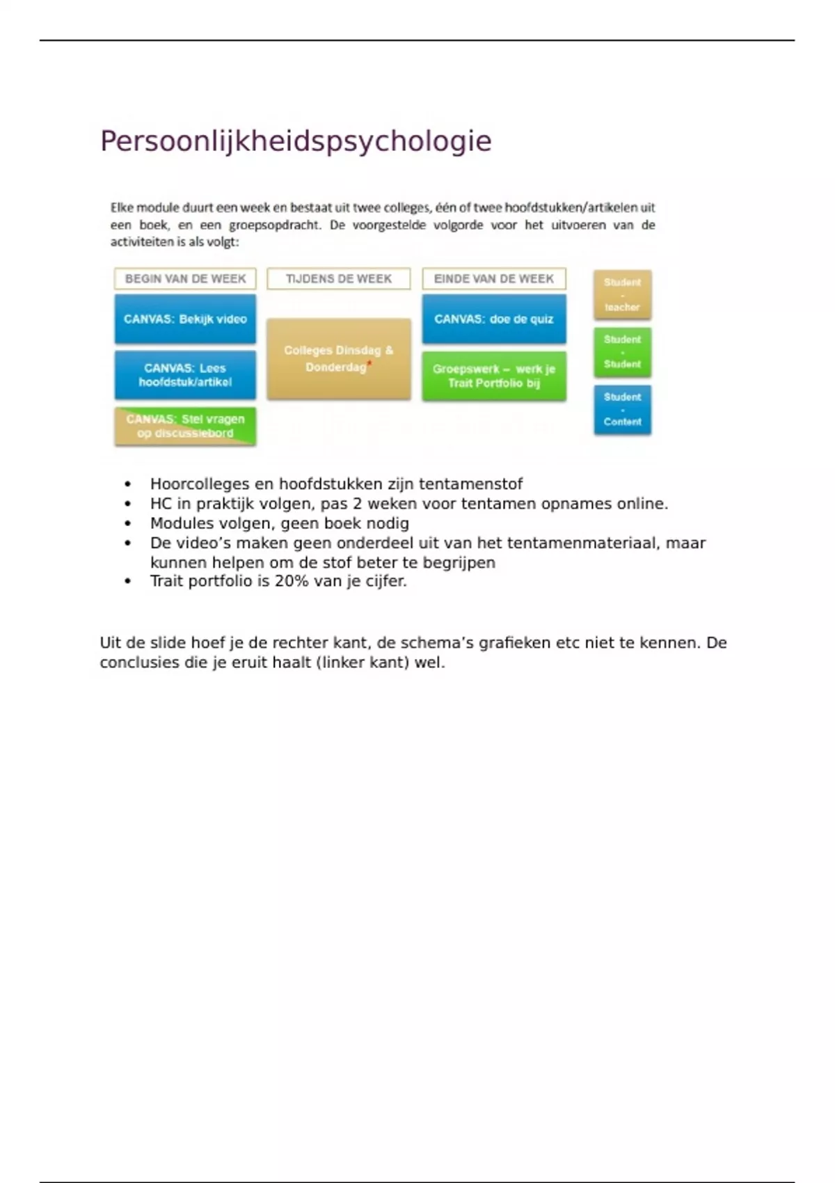 Uit de slide hoef je de rechter kant, de schema’s grafieken etc niet te kennen. De