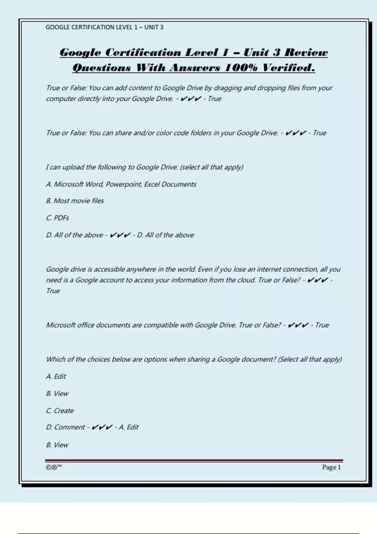 , GOOGLE CERTIFICATION LEVEL 1 – UNIT 3