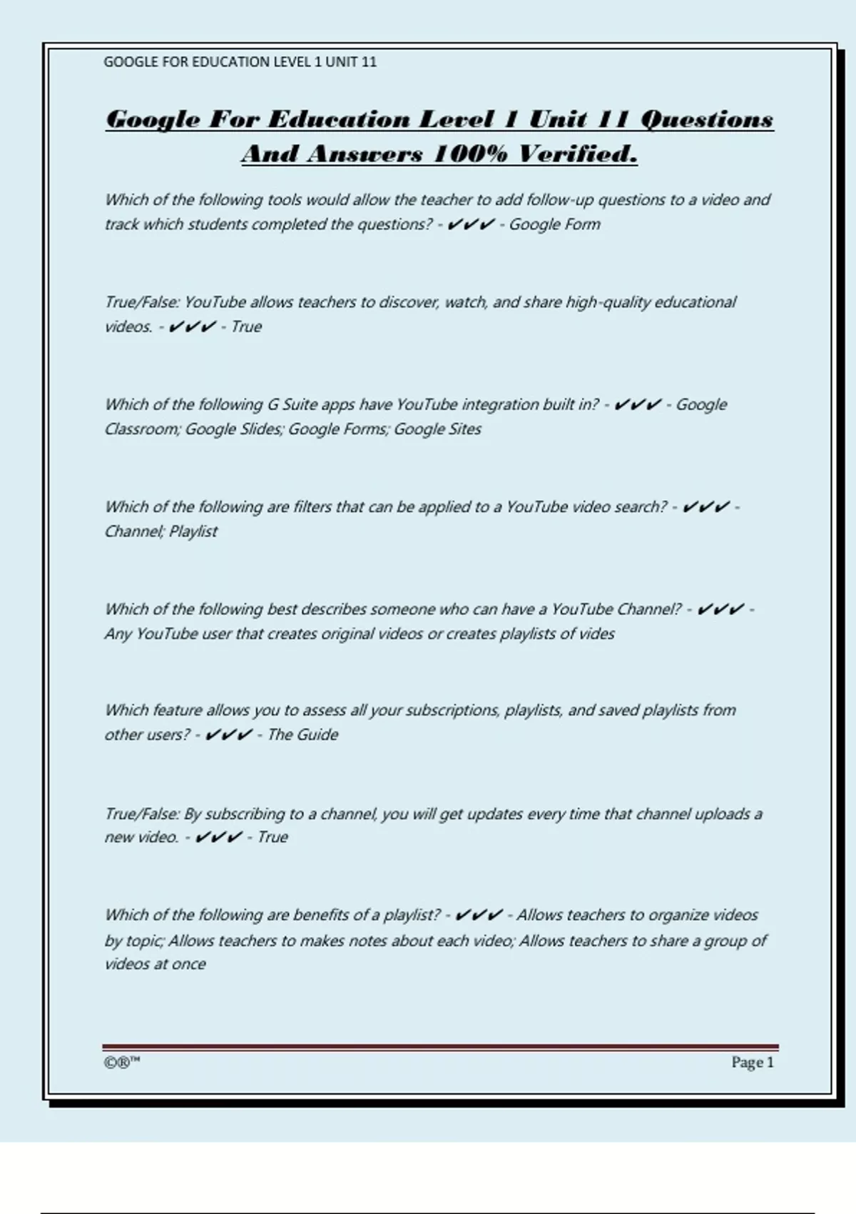Google For Education Level 1 Unit 11 Questions And Answers 100% Verified.