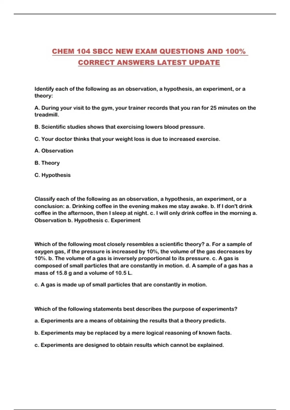CHEM 104 SBCC NEW EXAM QUESTIONS AND 100%