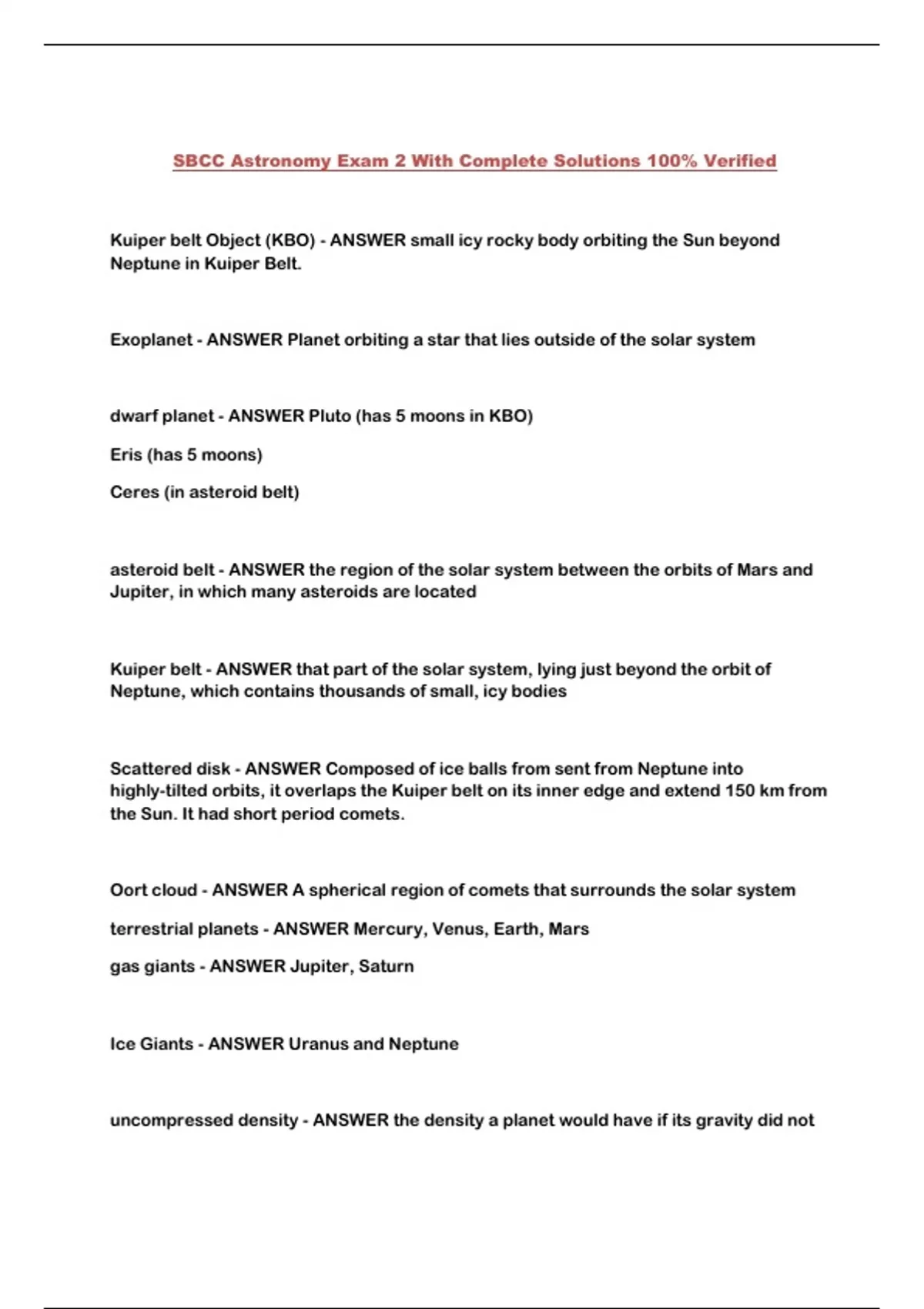 SBCC Astronomy Exam 2 With Complete Solutions 100% Verified