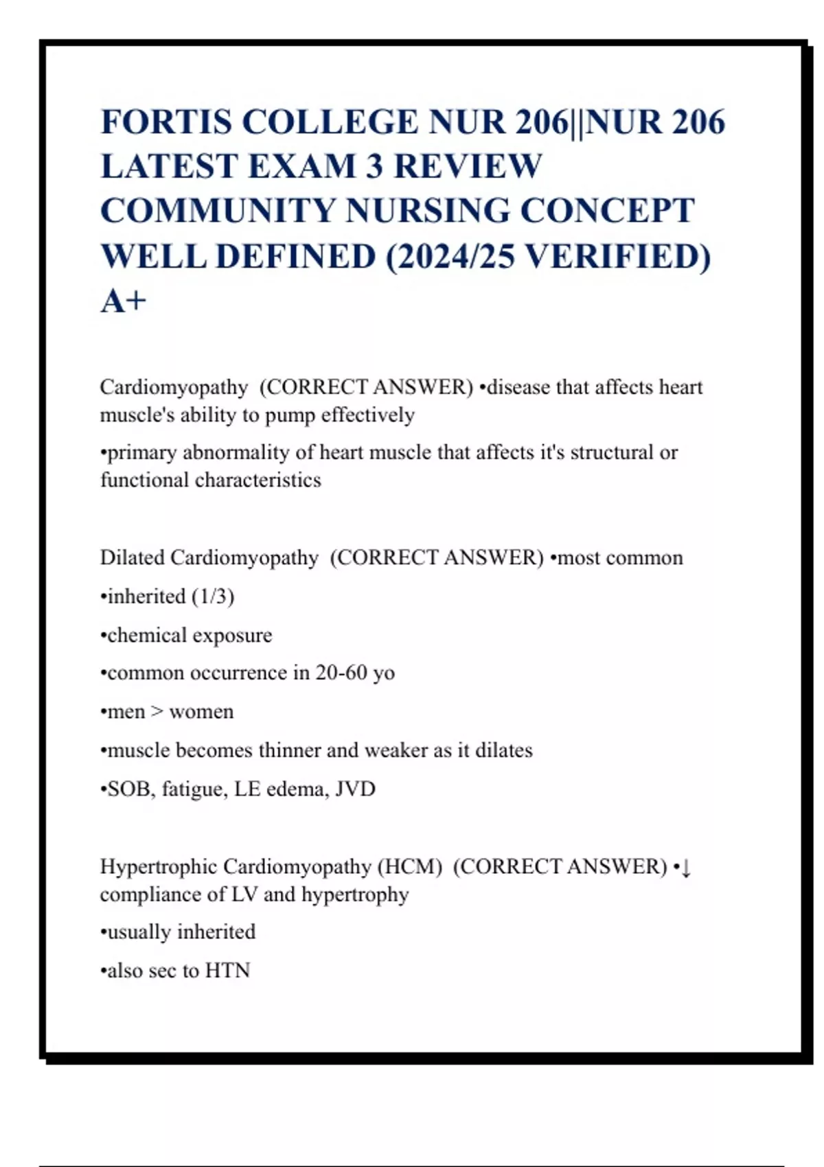 Cardiomyopathy (CORRECT ANSWER) •disease that affects heart