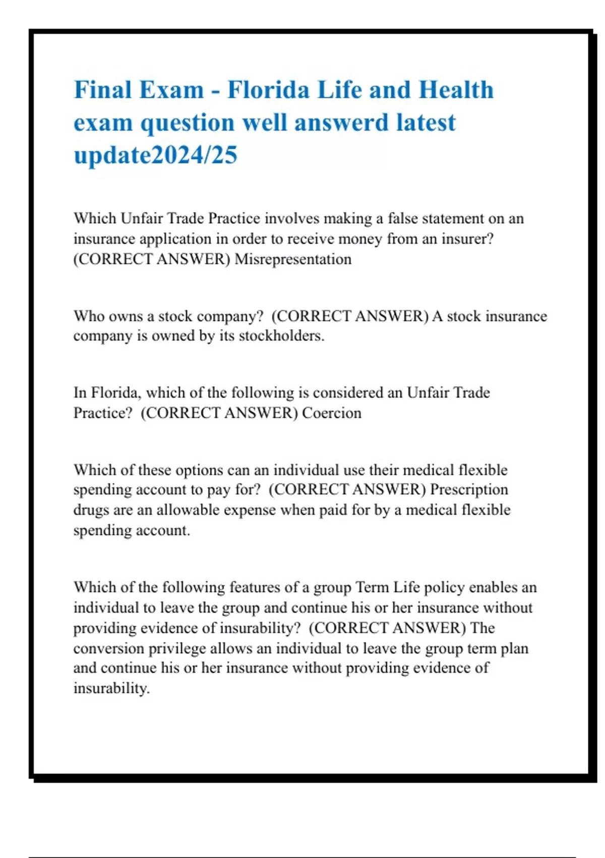 Final Exam - Florida Life and Health