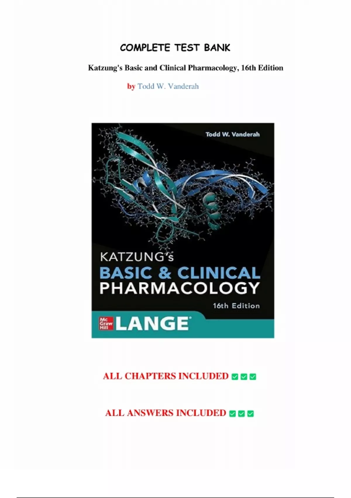 Test Bank for Katzung's Basic and Clinical Pharmacology, 16th Edition by Todd W. Vanderah, All Chapters