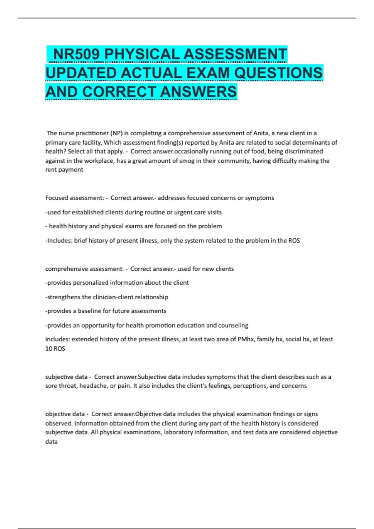 subjective data. All physical examinations, laboratory information, and test data are considered objective