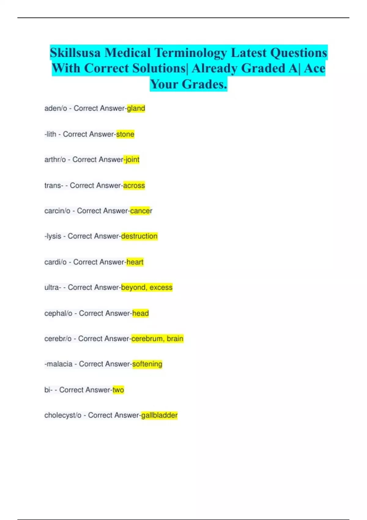 Skillsusa Medical Terminology Latest Questions With Correct Solutions| Already Graded A| Ace Your Grades.